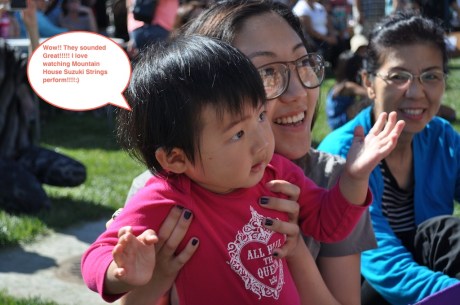 We started out with the Pre-Twinklers demonstrating a bow exercise and playing on the Open E and Open A strings: